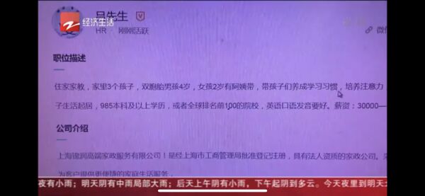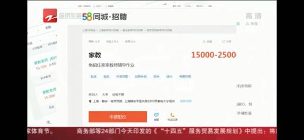 动辄上万的工资,上海本地已经找不到了,要来杭州招人,需要本科、研究生学历,这些发布在58同城、boss直聘上的急招住家家教招聘信息,反映出如今这一市场的火热。