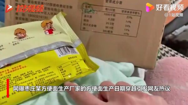 打开11月4日,山东枣庄。有网友爆料,枣庄内丰方便面生产的一款“鸡汁着味面”,其生产日期竟玩起了“穿越”。
