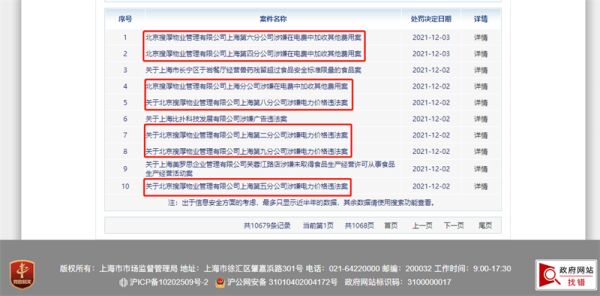 因该行为违反了《中华人民共和国电力法》第四十四条第一款“禁止任何单位和个人在电费中加收其他费用;但是,法律、行政法规另有规定的,按照规定执行。”之规定。依据《中华人民共和国电力法》第六十六条“违反本法第三十三条、第四十三条、第四十四条规定,未按照国家核准的电价和用电计量装置的记录向用户计收电费、超越权限制定电价或者在电费中加收其他费用的,由物价行政主管部门给予警告,责令返还违法收取的费用,可以并处违法收取费用五倍以下的罚款;情节严重的,对有关主管人员和直接责任人员给予行政处分。”之规定,上海市静安区市场监督管理局、长宁区市场监督管理局、黄浦区市场监督管理局分别责令相关公司返还违法收取的费用,并罚款约474万元至2174万元不等。行政处罚决定日期为2021年12月2日及12月3日。