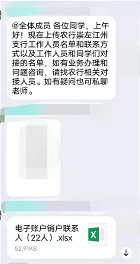 接到情况反映后,学校老师在群聊内回复称,学校已组织会议,正在跟进解决此事,并在群内上传了一份疑似由银行发布的《Ⅱ、Ⅲ类电子账户说明》。图/极目新闻