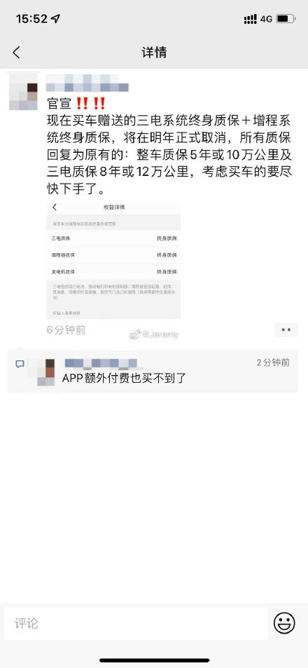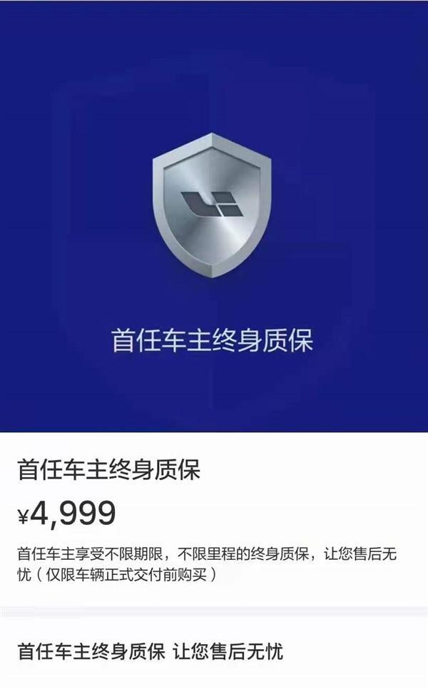 据了解,在去年3月份,理想汽车在其APP上线首任车主终身质保购买方案,车辆定购后至新车交付前的用户均可购买。