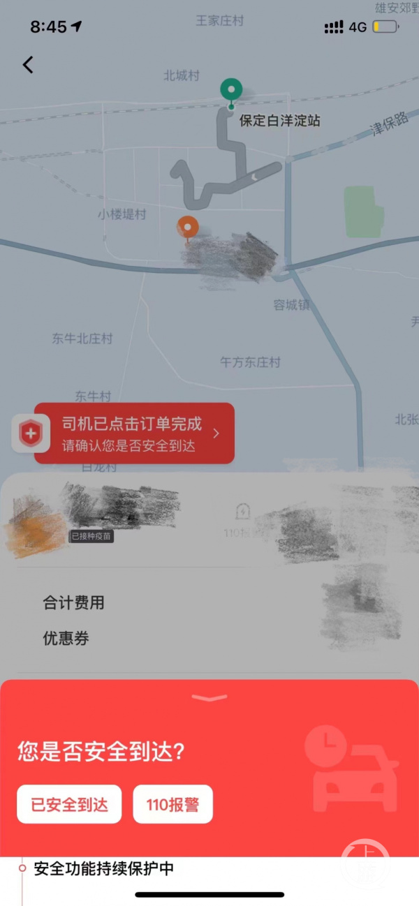 记者了解到,12月4号晚上8点,魏女士在河北保定白洋淀站下了一个网约车订单,她于8点08分上车,之后司机又去接了一位拼单男乘客。按照魏女士的回忆,整个路上司机一言不发,在把男乘客送往目的地后,他开始偏航行驶。