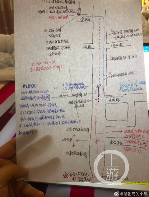▲王先生手绘的现场路线图。图片来源/受访者供图