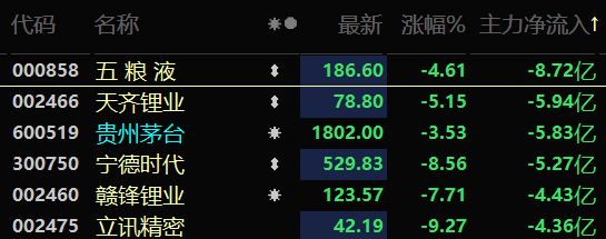 2月8日,整个白酒板块也大幅下跌,截至发稿,白酒指数跌超2%。主力资金早间出逃白酒股,截至记者发稿时,其中五粮液遭主力抛售近9亿元,五粮液股价跌近5%,贵州茅台主力净流出近6亿元。