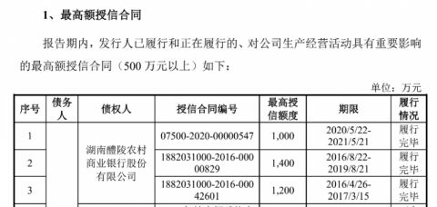 而记者注意到,报告期内,湖南醴陵农村商业银行股份有限公司曾3次给与恒茂高科千万元以上的授信合同。恒茂高科称其为“报告期内,公司已履行和正在履行的、对生产经营活动具有重要影响的最高额授信合同”。