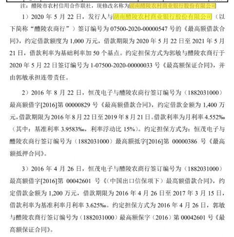 记者注意到,湖南醴陵农村商业银行股份有限公司与恒茂高科两次签订《最高额借款合同》的时间均集中在文智勇入股公司前后,分别为2016年的4月份及2016年8月份。