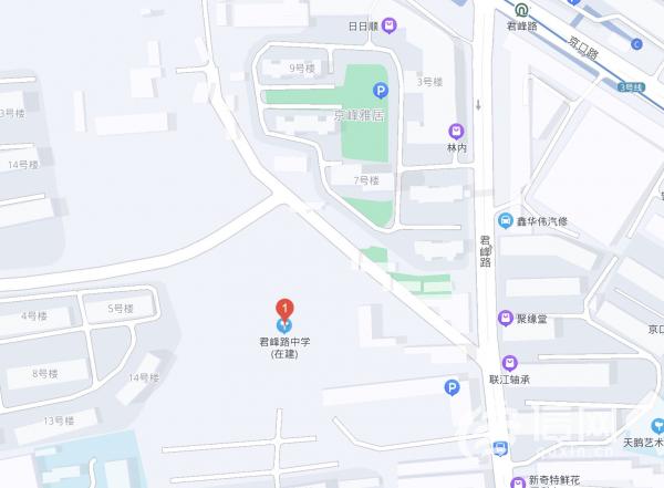 君峰路中学位于通真宫路以北,君峰路以西,京峰雅居南,华易示范小区北。(来源:李沧教育)