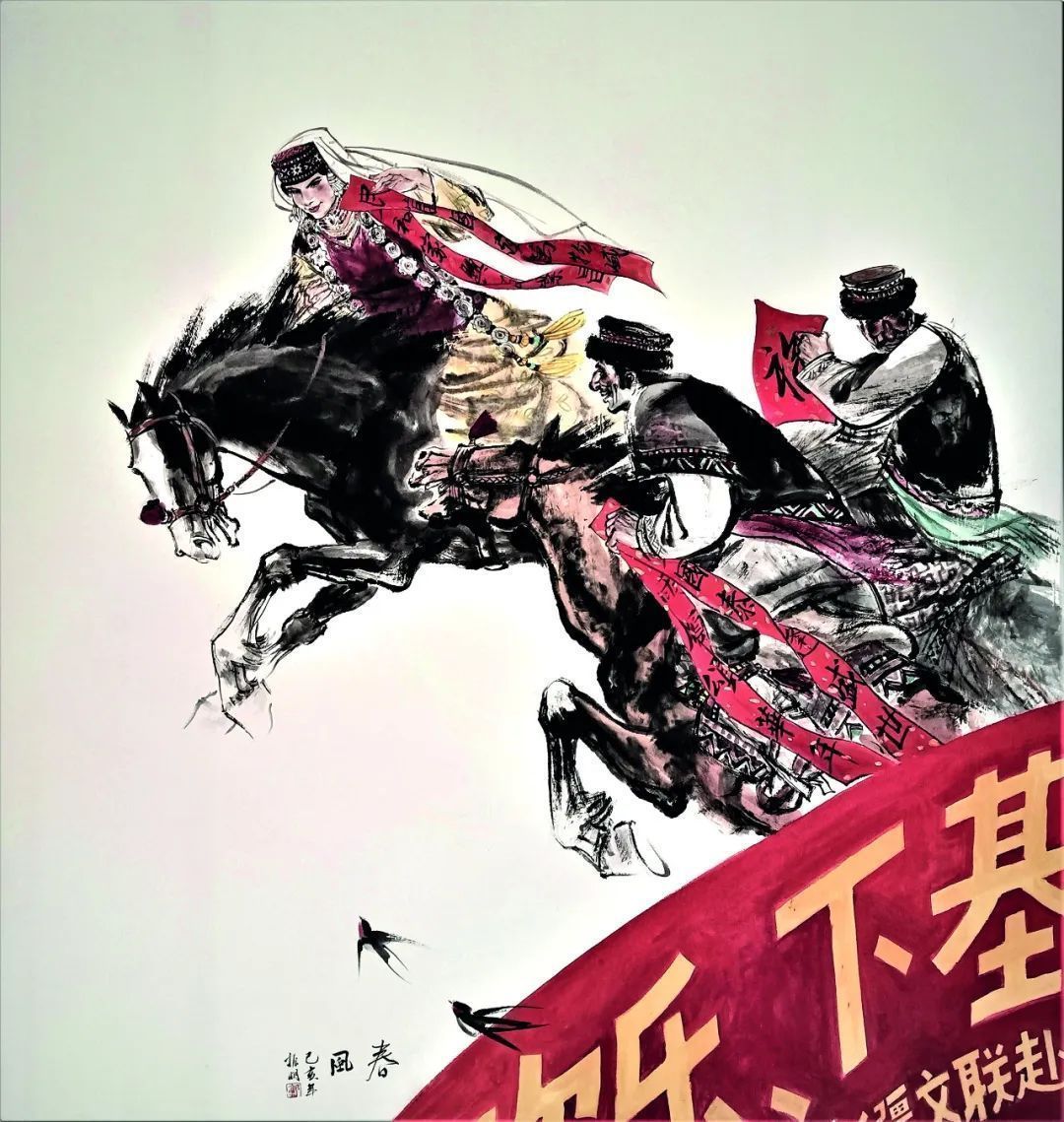 问:新疆美协多次组织“石榴籽美术小分队”进行文化下乡活动,您发出了“民族团结需要优秀文艺作品,社会长治久安需要我们文艺家”的感叹。请您谈谈青年文艺工作者应该如何创造美术精品,担当民族复兴重任?